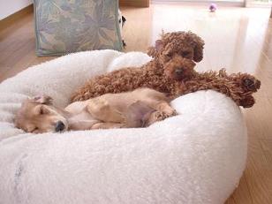 シ〜〜〜。。。おこさないでね・・ ロミタン子守は初めてだから疲れたワン |