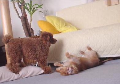 ハッピー 「コイ!コイ!」 ロミ 「おまえはアントニオ猪木かぁ」 |