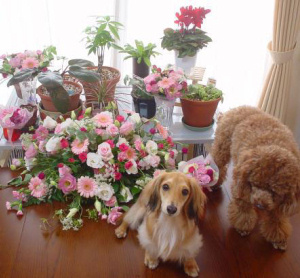 ママはお花がいっぱいで嬉しくってたまりません♪ ロミハピもお花と一緒にパチリ! |