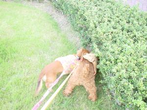 遠くにみえるベンチでは、 トランペットを練習しているお姉さんがいます。 ハッピータンは、音楽が好きみたいです。 いつまでもジ〜〜トみつめていました。 ![]() おーい、ロミタァ〜ン、ハッピータァ〜ンおいで! ![]() ![]() ハイ、ちーず!パチリ イイかんじです〜ないすです〜イケメンじゃん♪ ハッピータン、お口がちょっとおおきいようですネぇ ロミタン毛が伸びすぎて目がどこにあるのかわかりませんネぇ ![]() こらこら、どこに入っているのかな おしりがみえてるよ でもね、あんまり草のあるところに行かせないほうがいいです。 草の種をもらってきて、毛の長いロミタンはお散歩から帰って、 ブラッシングが大変でした。 ![]() ロミタン:3.8s ハッピータン:4.2s 食欲・うんぴ良好 ハッピータン・シャンプー ![]() |