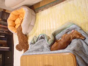 12月3日の日記でも書いたアロマティラピィ〜〜♪ 自然の力というのは大したものである。 パパにはナイショで使っていたのだが・・・ 今日の朝起きると、 「あ〜今日は調子いいわ。鼻がすーっと通ってぐっすり眠れた〜」と言うではないか! ほんとかいナ っと一瞬疑った。。 でも、パパは知らない・・・ 私が夜な夜なアロマティラピィ〜〜〜〜〜を、じりじりと焚いている事など。 確かに、わん達も手足を伸ばして気持ちよさそうに寝るのよね〜〜♪ ![]() |