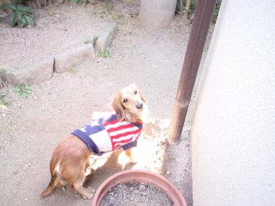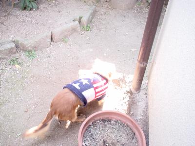 ハッピータンが地面を掘っています。 はじめて犬っぽいところをみました! |