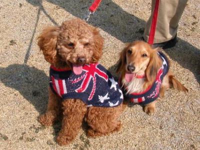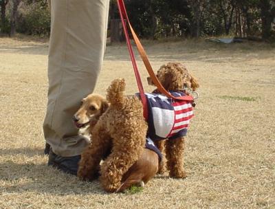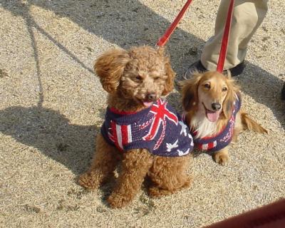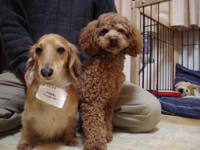 ![]() はじめましてアフガンハウンドのアレンちゃん。 はじめまして手前のダイユウサク君。 |