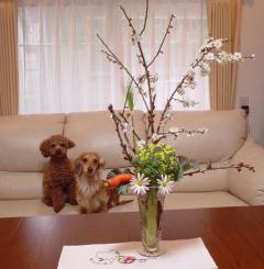桃とはいきませんが梅の枝も折ってくれました。