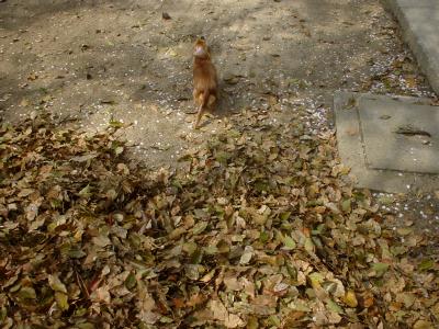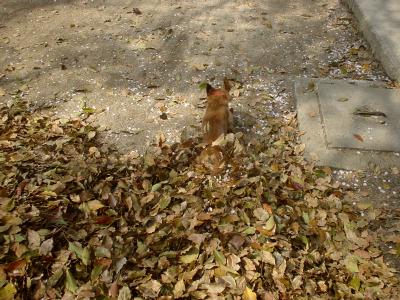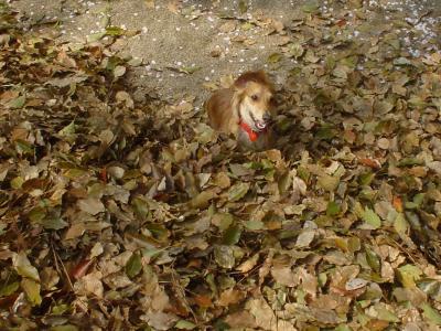 枯葉の中に突っ込んでいっては、出てくるよ。