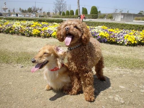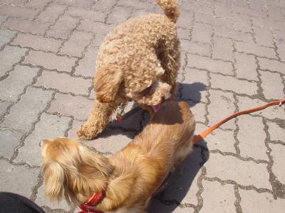 二人とも、毛の色合いが同じ様になったね。 よく兄弟に間違われるよね。 おっ!ハッピーたん今日もキューピットの羽がフワフワしてますね♪ |